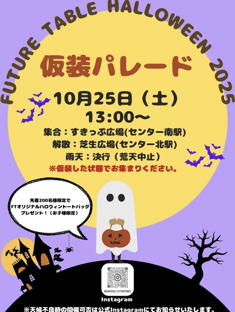 毎年恒例のFT秋の大祭典のHalloween party2025。保護者様、ご兄弟姉妹様はもちろん、FTにご入会されていない保育園のお友達も大歓迎です。ご予約不要です。お気軽にご参加ください。当日先着200名様までFTオリジナルハロウィントートバックプレゼント♪ (お子様限定)みんなでハロウィンを楽しみましょう!