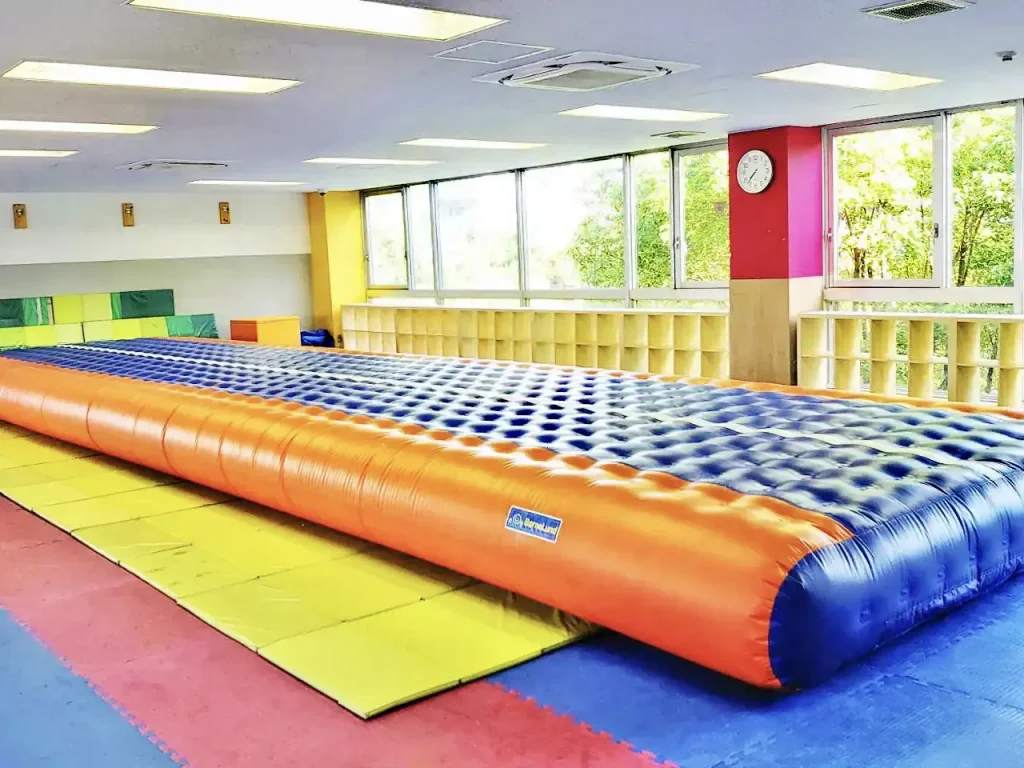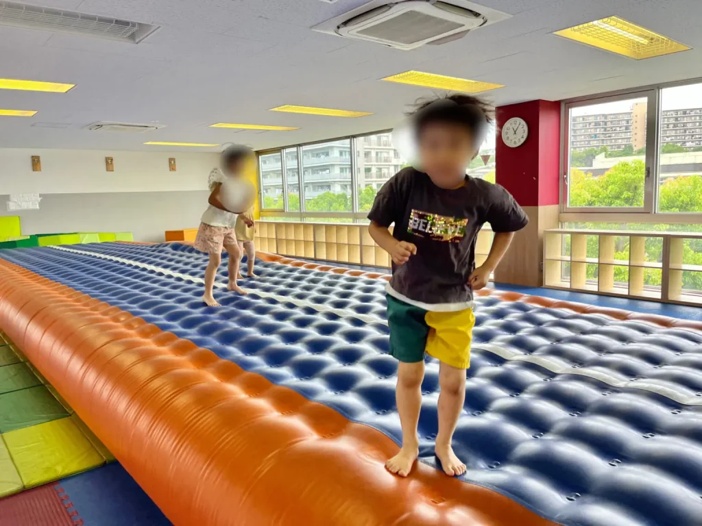 平台総合体育館は全店舗共通で使用する機会のある大型施設となっております。3Fのエアトラックやターザンロープ遊び、2Fの体育館で自転車や一輪車練習、1Fの人工芝ではサッカーやバスケを行うこともできます。お父様やお母様、ご兄弟様やお連れのご友人様方と一緒に楽しんでいただけましたでしょうか。