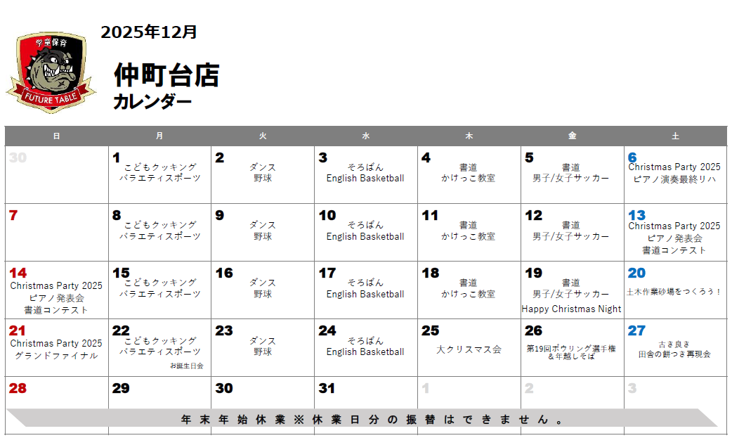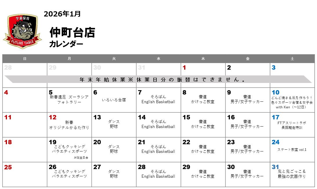 仲町台店 月間プログラム
